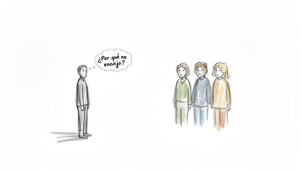 Para que te hagas una idea, imagina que las interacciones sociales son como un baile improvisado. La mayoría de la gente (las personas neurotípicas) parece conocer los pasos de forma instintiva. Se mueven al ritmo de señales no verbales, dobles sentidos y normas sociales que nadie ha explicado en voz alta. Para un adulto en el espectro, este baile no es nada intuitivo; es más bien como un ejercicio de ingeniería inversa que requiere analizar de forma consciente cada paso, cada gesto y cada palabra.