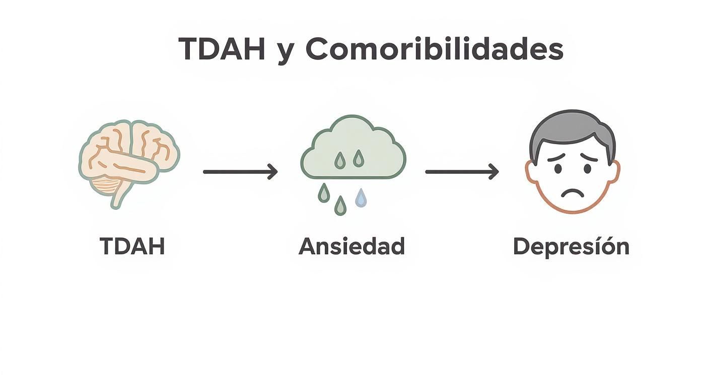 Reconocer estas comorbilidades es crucial. Un diagnóstico que solo se centra en la ansiedad o la depresión, sin identificar el TDAH que está debajo, es como intentar apagar el humo sin atender al fuego. Por eso, una evaluación completa que analice el cuadro global es el único camino para encontrar las estrategias y el tratamiento que realmente funcionen para ti.