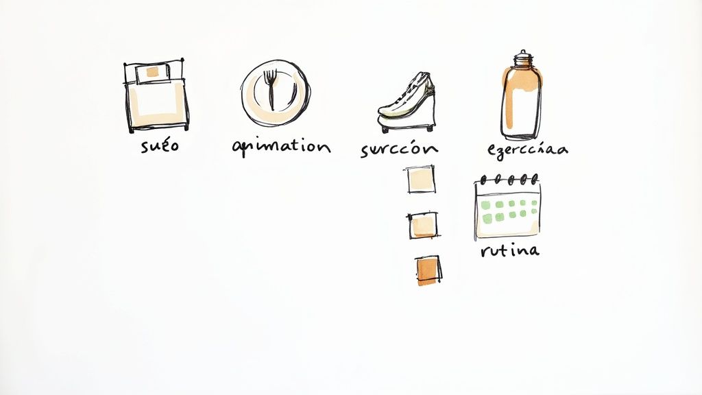 El estrés emocional de una ruptura afecta directamente a tu cuerpo. La hormona del estrés, el cortisol, se dispara, provocando problemas de sueño, falta de apetito y una sensación de agotamiento constante. Para contrarrestar esto, vamos a centrarnos en tres pilares fundamentales.
