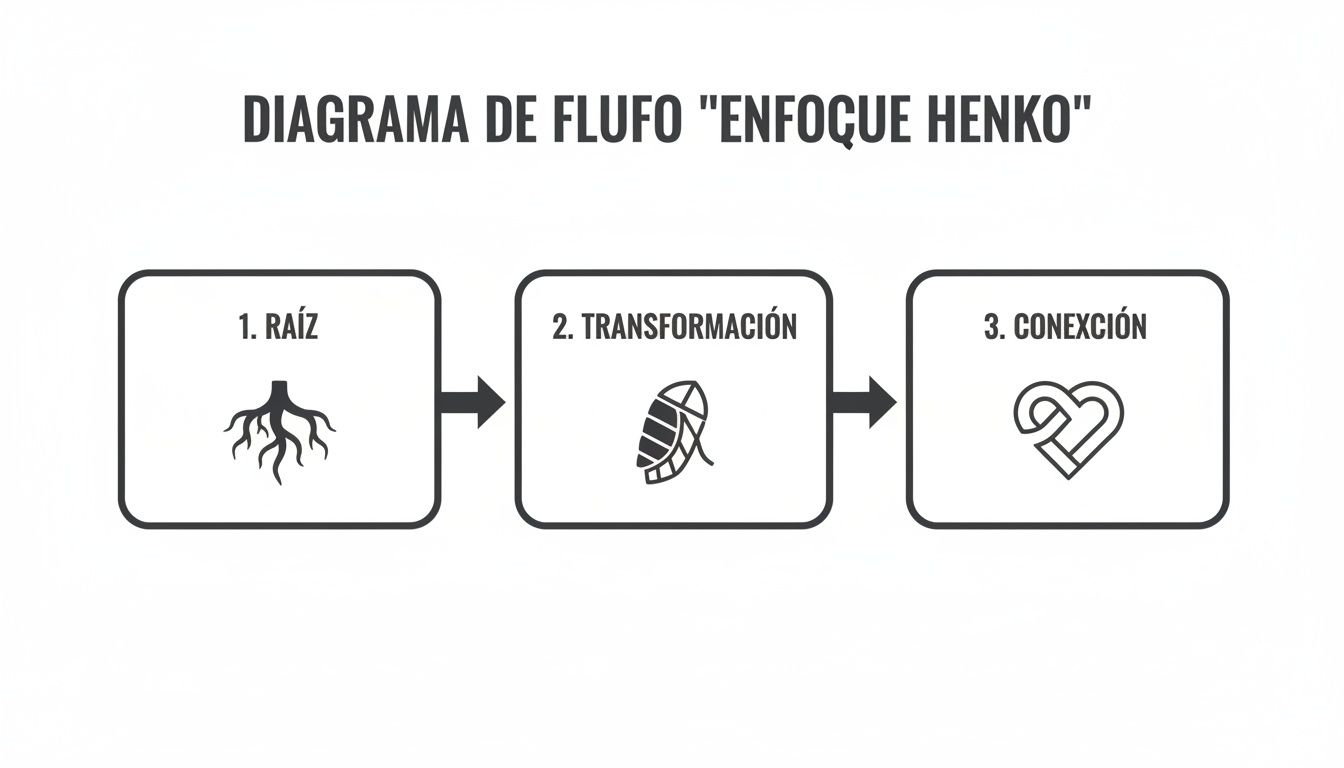 Para que podáis visualizar mejor este proceso de cuidado y crecimiento, a menudo explico mi enfoque Henko con un flujo muy sencillo de tres etapas.